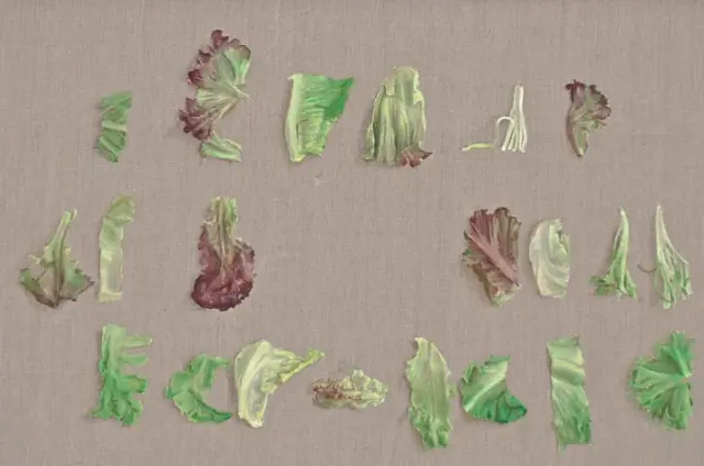 Картины Элен Апель очень просты по своей сути. Зачастую это изображения обычных предметов или вещей в натуральную величину, но написанные с потрясающей точностью. Необработанное льняное полотно только усиливает ощущение, что перед нами не плоское изображение, а настоящий объект. Для своих картин Элен Апель использует разные техники, подбирая их в зависимости от изображаемого объекта. Например, для мяса она выбирает воск: он хорошо передаёт плотность и блеск. Для луж - сильно разбавленный акрил и акварель.