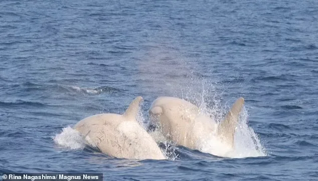 Японские наблюдатели за китами были потрясены, увидев двух редких косаток-альбиносов, покрытых боевыми ранами, полученными в открытом океане. Нориюки Хаякава запечатлел эти кадры.