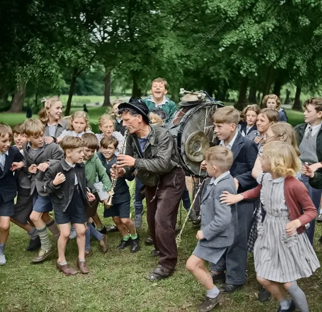 2. Развлечение толпы детей в Хексхэме, Нортамберленд, 1950 год.