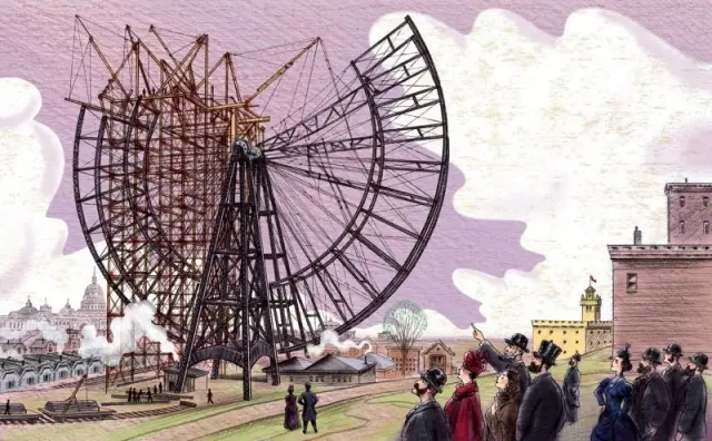 Инженер-мостостроитель Джордж Вашингтон Гейл Феррис-младший решил затмить Эйфелеву башню. Для Всемирной выставки 1893 года в Чикаго он создал стальное колесо высотой 80 метров с 36 кабинами, каждая из которых вмещала до 60 человек.