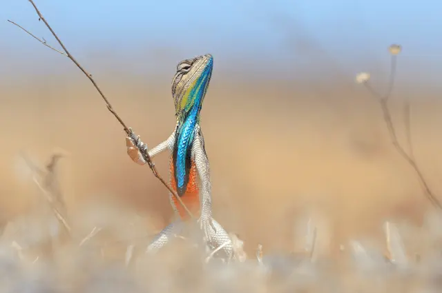 Ящерица агама-ситана в боевой стойке