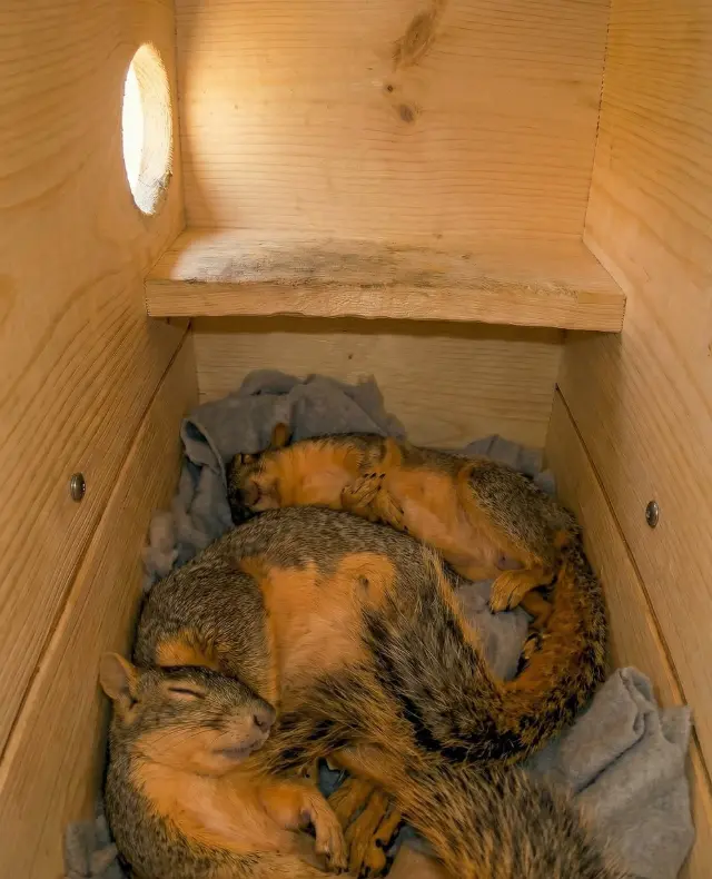 В отличие от некоторых других млекопитающих, белки не впадают в настоящую зимнюю спячку. Когда температура падает, они просто дольше остаются в своих гнёздах - древах или дуплах, которые называются «дреями».