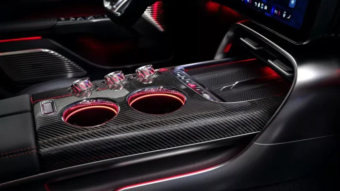 Физические кнопки и переключатели расположены только на консоли между сиденьями и на руле, в то время как передняя панель полностью сенсорная. Управление климат-контролем интегрировано в медиасистему, а цифровая логика машины включает голосовой ассистент.