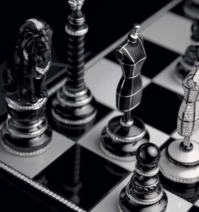Модный дом Chanel показал эксклюзивный арт-объект Coco Game - шахматный набор, созданный как предмет роскоши и коллекционного дизайна. Доска выполнена из керамики и обсидиана с элементами белого золота и украшена тысячами бриллиантов. В комплект входят 32 фигуры, каждая из которых задумывалась как самостоятельный дизайнерский объект. Внутри фигур королев скрыты часы, а отдельные элементы можно использовать как украшения. Стоимость набора оценивается примерно в 4 миллиона долларов, подчёркивая его статус подарка «для тех, у кого уже всё есть».